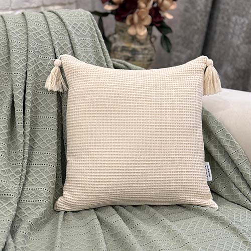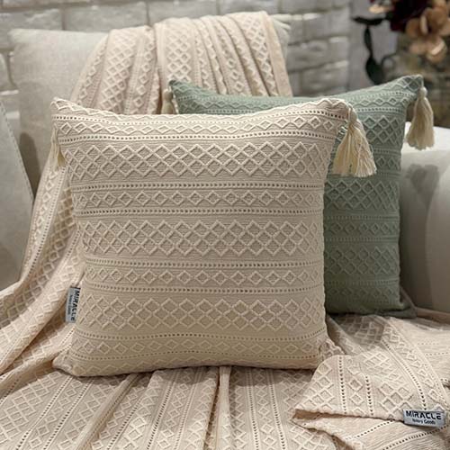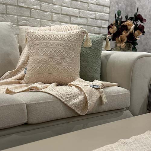 کاور کوسن بوهمی طرح لوزی رنگ استخوانی