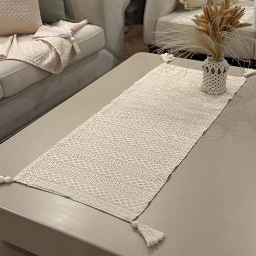 رانر بوهمی بافت لوزی کرم