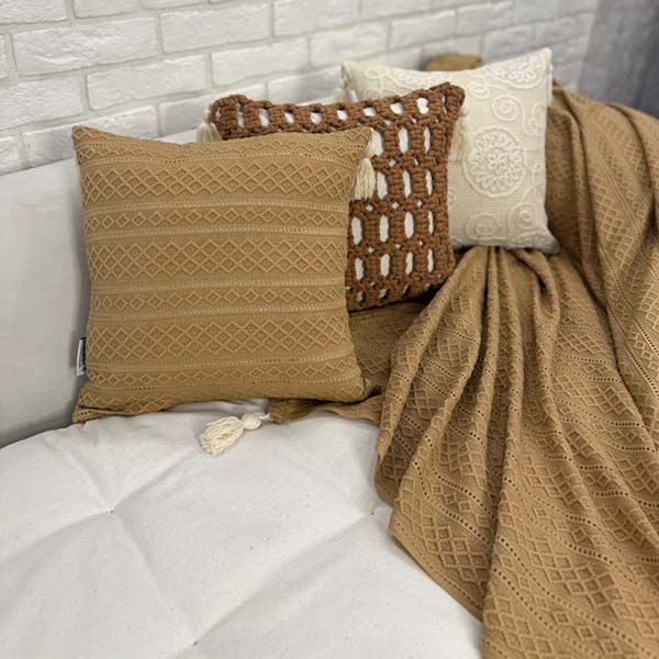 کاور کوسن بوهمی طرح لوزی رنگ نسکافه ای