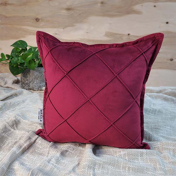 کوسن مخمل طرح لوزی دور دوخت زرشکی 1243