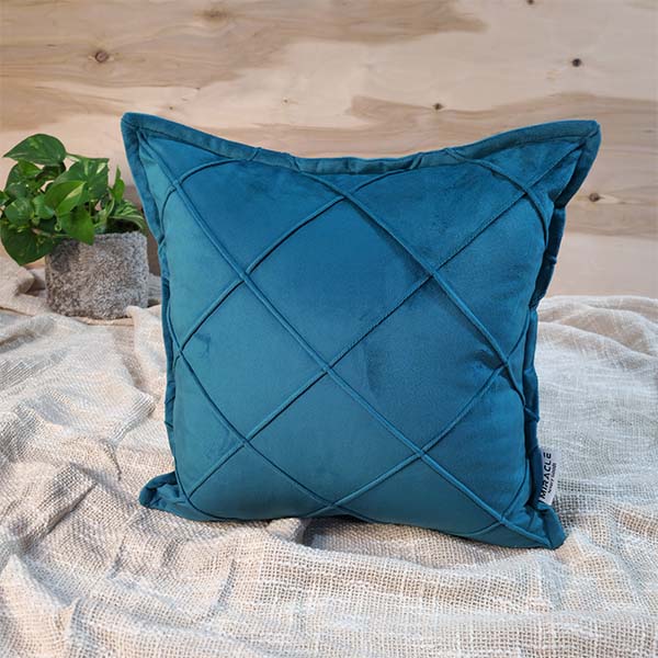 کوسن مخمل طرح لوزی دور دوخت سبز آبی 1220