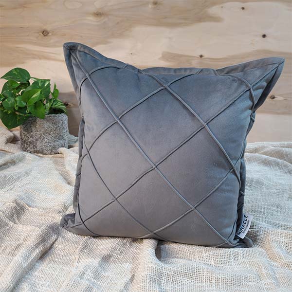 کوسن مخمل طرح لوزی دور دوخت طوسی 1221