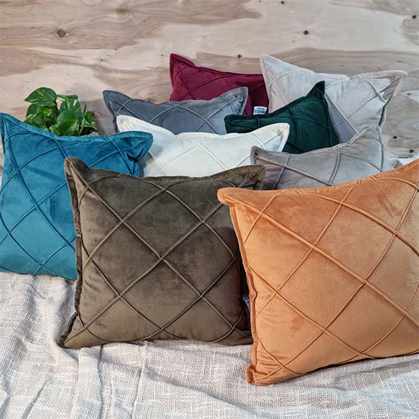 اگه دنبال یه کوسن شیک و خاص هستی که هم ساده باشه و هم چشم گیر، کوسن مخمل طرح لوزی دوخته شده روی کوسن باعث میشه کار از سادگی دربیاد و یه جلوه مرتب و حرفه ای به دکوراسیون بده.