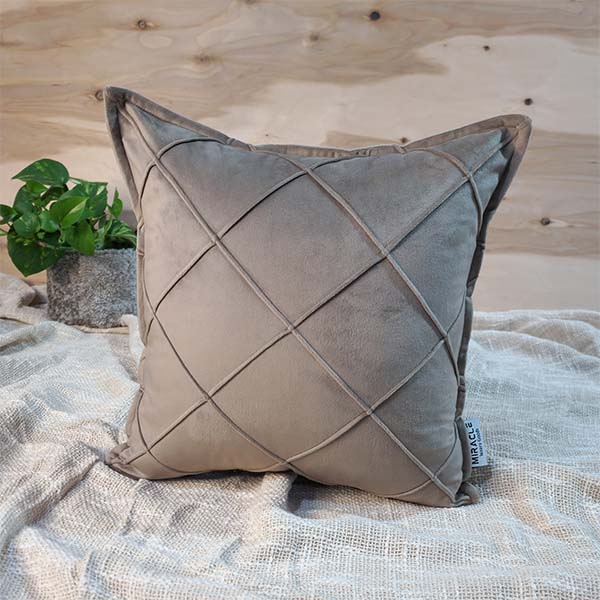 کوسن مخمل طرح لوزی دور دوخت قهوه ای روشن 1206