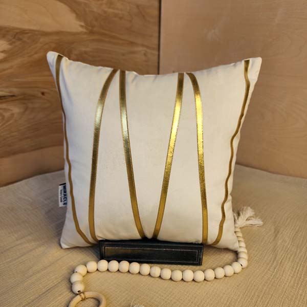کوسن مخمل 10 و چرم طلایی ( طرح زیگزاگ )
