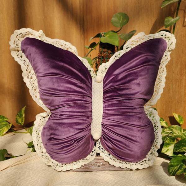 کوسن پروانه مخمل بوهو ارغوانی کد 1252